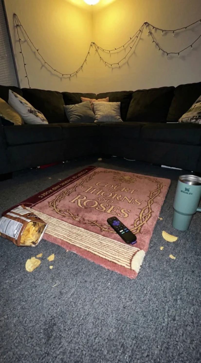 I ordered the A Court of Thorns and Roses rug and I was honestly surprised by how good it looks in person. The texture is really soft but still keeps its shape well, and the lettering is clean and not blurry at all. It genuinely looks like a giant book on the floor which is exactly what I wanted. Already had people ask where I got it from. Shipping was quicker than expected too.